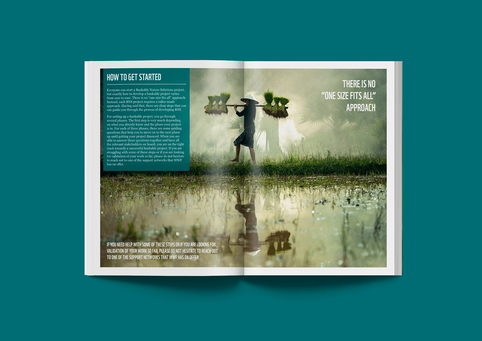 The Bankable Blueprint Book is an inspiring guide for anyone looking to invest in nature while generating profit. In collaboration with Natuurverdubbelaars, a consultancy specializing in ecological challenges, we developed this 150-page publication. I was in charge of all visual content, ensuring alignment with WWF’s visual guidelines, and created the design including infographics, icons, and other graphic elements.